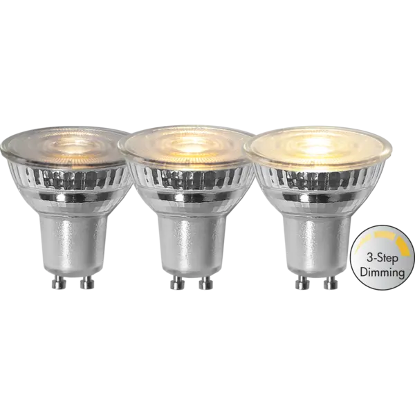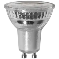 LED Spotlight med GU10 sockel med 3-stegs klickdimring, 350-175-50lm. Spridningsvinkeln är 36°, och den är helt i glas!