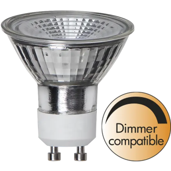 Dimmerkompatibel LED Spotlight med GU10 sockel. Spridningsvinkeln är bred 100° och lampan är i glas och keramik.