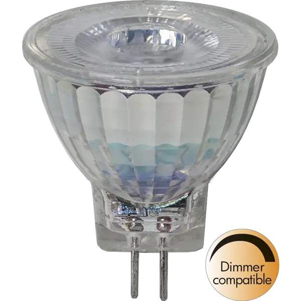 Spotlight med LED. Sockeln är GU4 och spridningsvinkeln är 36°. Ljusskenet är varmvitt. Denna spotlight är dimmerkompatibel.
