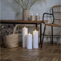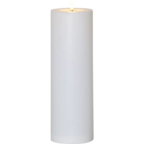 Flamme Rak är ett vitt ljus i plast med vår naturtrogna Flamme låga. Detta ljus passar lika bra inomhus som utomhus, i en lykta eller i grupp med andra uteljus från Flamme familjen. Detta elektriska ljus går att använda både med ljussensor och med timer. Önskar man sensor så sätts brytaren på ON läget, ljuset lyser då upp när mörkret faller. Sätter man brytaren på timer i stället så lyser ljuset i 6 timmar, sedan slocknar den i 18 timmar och lyser upp nästkommande dag igen.
