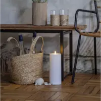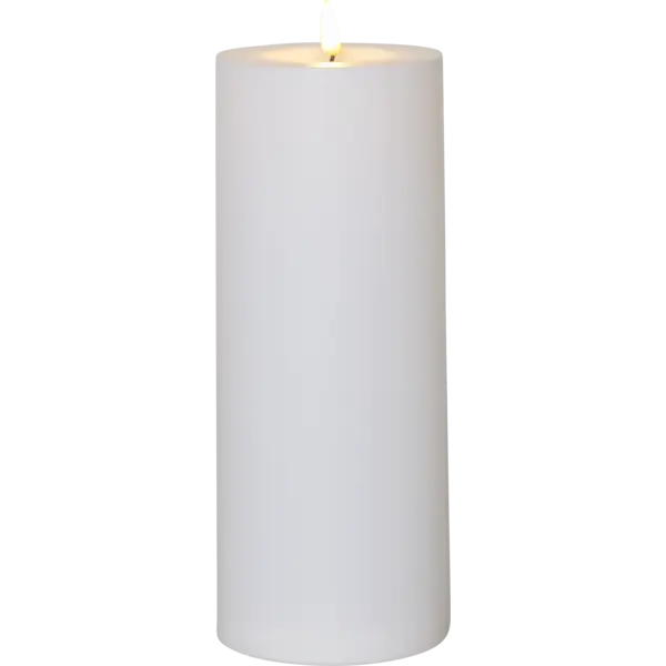 Flamme Rak är ett vitt ljus i plast med vår naturtrogna Flamme låga. Detta ljus passar lika bra inomhus som utomhus, i en lykta eller i grupp med andra uteljus från Flamme familjen. Detta elektriska ljus går att använda både med ljussensor och med timer. Önskar man sensor så sätts brytaren på ON läget, ljuset lyser då upp när mörkret faller. Sätter man brytaren på timer i stället så lyser ljuset i 6 timmar, sedan slocknar den i 18 timmar och lyser upp nästkommande dag igen.