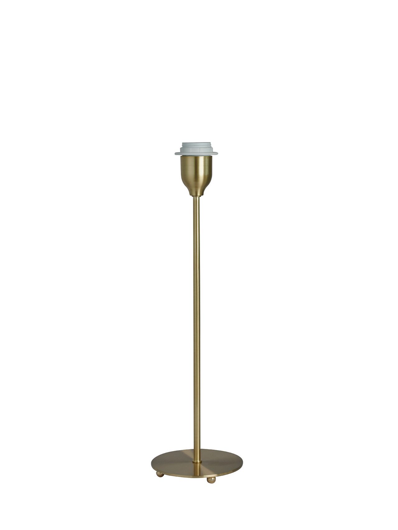 Line table 45 Gold är en stilfull bordslampa med enkla linjer i matt, guldfärgad metall och har en elegant vit textilsladd. Välj själv det uttryck du vill skapa med den här modellen, då Line passar med utmärkt med många olika typer av lampskärmar ur vårt breda sortiment. Lampan känns nätt där den balanserar på kulorna under basplattan och passar perfekt på den lilla fönsterbrädan där du vill ha lite höjd, eller på ett litet sidobord eller som läslampa på nattduksbordetHöjd cm 45 Diameter bas cm 12,5 Färg Guld Finish Matt Material Järn Material sladd Textil Färg sladd Vit Längd sladd cm 160 Sockel E27 Max watt 60 Brytare Ja Dimmer Nej
