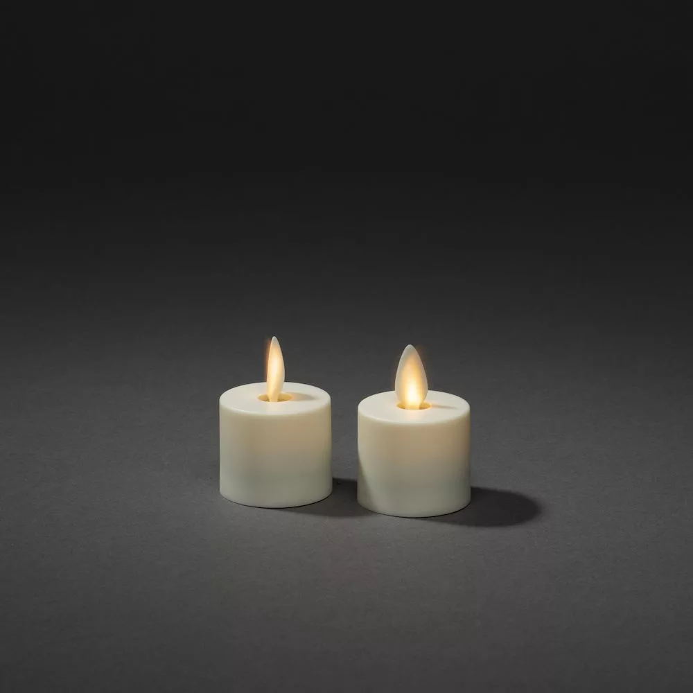 Detta set med Gnosjö Konstsmide LED-ljus är perfekt för att skapa en mysig och stämningsfull atmosfär i ditt hem. Varje ljus är 3,5×5 cm stort och har en inbyggd LED-lampa som ger ett varmt och behagligt ljus.