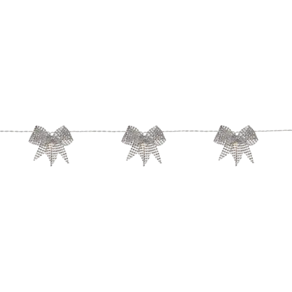 Batteridriven inomhusslinga med dekorationer i form av silverfärgade rosetter och 10 varmvita LED. Smakfull ljusslinga som passar lika bra till julgranen som bordsdekoration. Timerfunktion i batteridosan.