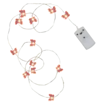 Liten nätt batteridriven led ljusslinga med rosa/röda fjärilar, 12 st. ljuspunkter av dewdrops. Kan användas vid diverse dekorationer, vid tex dukningar, blomsterarrangemang, i fönster, på väggen osv.