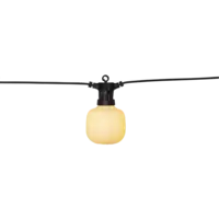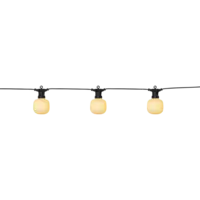 Ljusslinga med vita frostade höljen och 10 LED-ljuskällor för utomhusbruk. Svart kabel. Härlig ljusslinga att inreda med till vardags och fest. Ger ett vackert sken i mörkret.