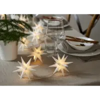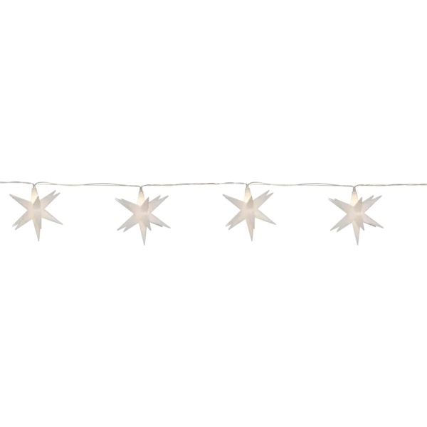 Ljusslinga med varmvitt sken och 8 st vita stjärnor för inomhusbruk, varje stjärna har 12 uddar. Batteridriven med timerfunktion. En klassisk juldekoration som förhöjer stämningen i hemmet.