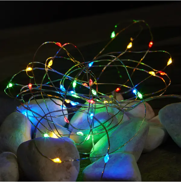 Dekorativ ljusslinga med 40 stycken multifärgade LED dew drops. Kan användas vid diverse dekorationer, vid tex dukningar, blomsterarrangemang, i fönster, på väggen osv. Slingan har en inbyggd timer.