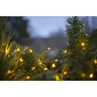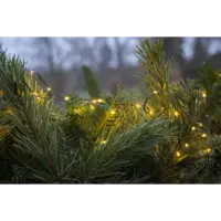 Tunn platt batteridriven slinga med små ljuspunkter för utomhusbruk, perfekt och enkel att använda i träd, buskar, kransar, trappräcken mm. Grön kabel med 96 varmvita LED, 7,5cm mellan varje lampa ger en slinga på ca 7m. Batteribox med timerfunktion och 8 olika blinksekvenser varav en är med fast sken.