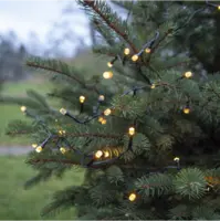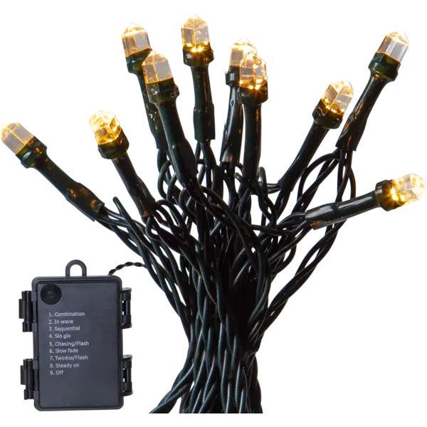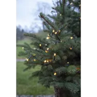 Ljusslinga med 80 varmvita ljuskällor och svart kabel för utomhusbruk. Ljusskenet från slingan har en effekt av stjärnreflektion. Jättefin att dekorera med i trädgården och i granen. Batteribox med timer och 8 olika funktioner för justering av ljusskenet. Slingan levereras i en plastlåda med handtag, perfekt för förvaring när ljusslingan inte används.