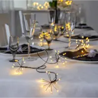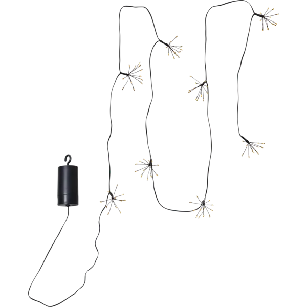 Vacker batteridriven ljusslinga med 96 LED dew drops fördelade på 8 blommor. Kan användas vid diverse dekorationer, vid tex dukningar, blomsterarrangemang, julgranen och mycket mer. Batteriboxen är gjord för att klara utomhusbruk. Slingan är svart och ljusen varmvita med timerfunktion.