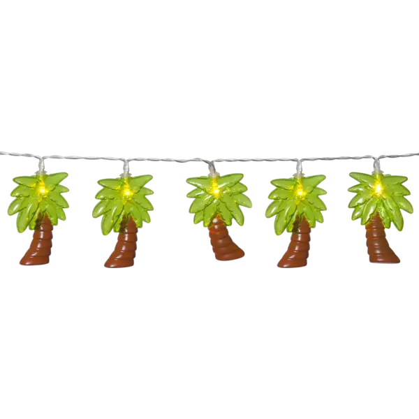 Batteridriven ljusslinga med 10 varmvita LED-lampor. Underbar ljusslinga att dekorera med till vardags och fest. Ljusslingan är transparent och dekorerad med palmer. Den inbyggda timern gör det lätt att ställa in när ljusslingan ska lysa.