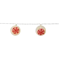 Batteridriven ljusslinga fint dekorerad med 10 bollar med julmotiv i rött och vitt. Placera ljusslingan på ett bord eller i julgranen. Dekorativ inredning som ger ett mysigt sken i hemmet.