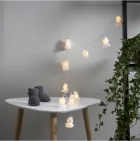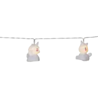 Söt slinga med 10 enhörningar på i LED ljus. Fin att ha i barnrummet. Den inbyggda timern gör det lätt att ställa in när ljusslingan ska lysa. Drivs med 3 st. AA batterier. Batterier ingår ej.