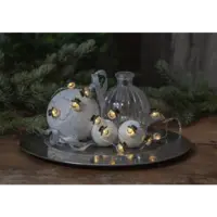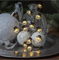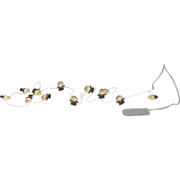 Liten nätt batteridriven ljusslinga med snögubbar och silverfärgad metallkabel. 12 st ljuspunkter av dewdrops. Kan användas vid diverse dekorationer, vid tex dukningar, blomsterarrangemang, i fönster osv.
