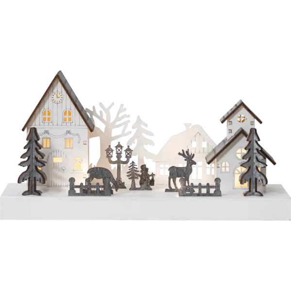 Fin laser cut ljusstake med julmotiv för inomhusbruk. Ljusstaken har 4 stycken led ljus och många fina detaljer. Placera i fönster eller på en skänk för en härlig julkänsla.