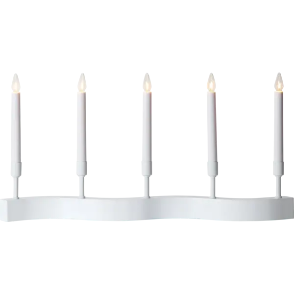En vit ljusstake. Basen är gjord av trä och ljushållaren i metall, 5 ljuskällor. Sprider varmt och trivsamt ljus. Ger ditt hem en modern touch.