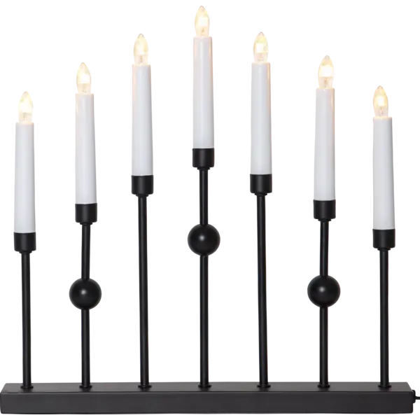 Stilren metalljusstake i svart. Ljusstaken har 7 ljuskällor med mysigt sken. En dekorativ ljusstake att ha i hemmet.