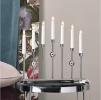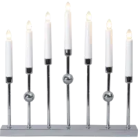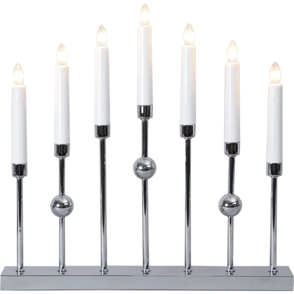 Stilren metalljusstake i krom. Ljusstaken har 7 ljuskällor med mysigt sken. En dekorativ ljusstake att ha i hemmet.