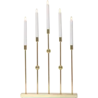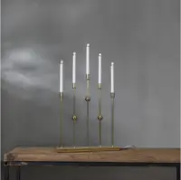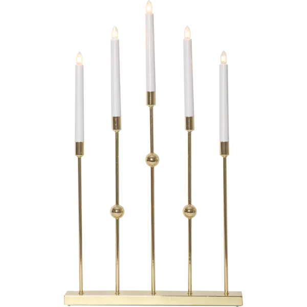 Stilren adventsljusstake i metall. Färgen är mässings. Ljusstaken har 5 ljuskällor med mysigt sken. Placera i ett förnster eller på en skänk, passar utmärkt till advent och jul.