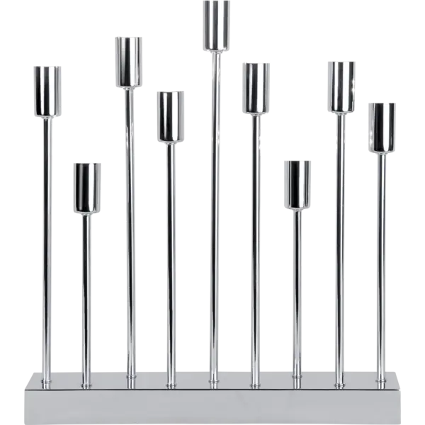 Snygg och stilren metalljusstake i krom. Ljusstaken har plats för 9 ljuskällor. E14 sockel.