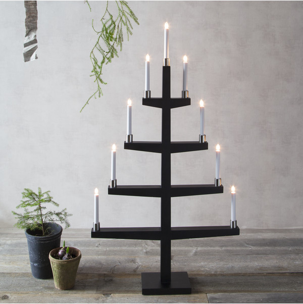 En större vit träljusstake med 9 ljuskällor. Ljusstaken är dekorerad med borstadstål ljushållare. Ger ett vackert sken och sprider en härlig julkänsla i hemmet.