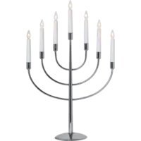 Vår eleganta metalljusstake Titus i kromfärg med senaste ljuskällan. 7 ljuskällor, soft glow. Sprider ett härligt ljus och skapar julstämning.