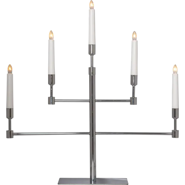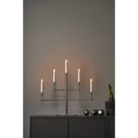 Modern adventsljusstake i krom, tillverkad i metall. Dekorera med till advent och jul, placera den i ett fönster eller på en skänk.