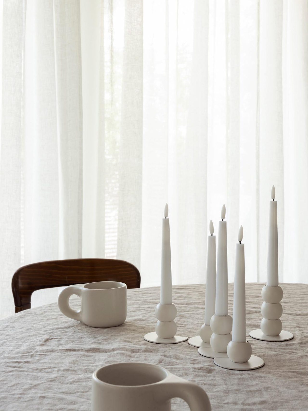 Stämningsfullt på matbordet under årets mörka kvällar eller bara helt enkelt en härlig ljuspunkt under ett avslappnande bad eller grillkväll i trädgården. Lykke White ljusstake har en samtida, smart design då den går att variera i sitt utseende och är portabel. Använd de fem LED-ljusen tillsammans eller placera ut dem på olika platser i ditt hem.Färg Vit Material Stål Finish Matt Höjd cm 28 Djup cm 8 Bredd cm 31