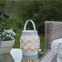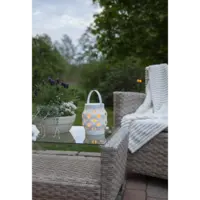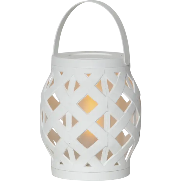 Vit plastlykta med dansande Flame låga inuti, kan användas både inomhus och utomhus. Med inbyggd timer