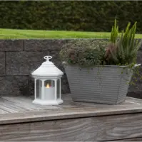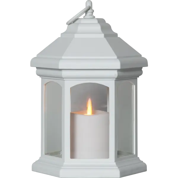 Lykta Linta är i vit plast och den går bra att använda både inomhus och utomhus. Lyktan passar såväl i hemmiljö som på en minnesplats. Den har timerfunktion och när brytaren är på timerläget lyser lyktan i ca 80 dagar med en vacker realistisk flammande låga. Den drivs av 2 AA batterier, dessa ingår ej.