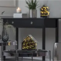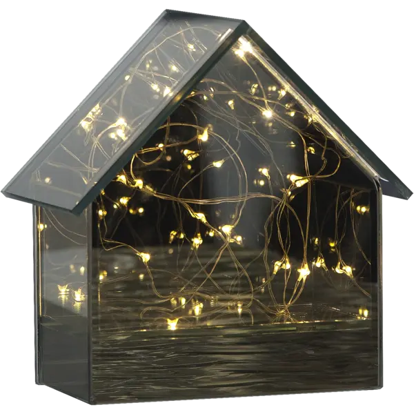 Batteridriven lykta i form av ett hus. En härlig dekoration att inreda med inomhus. Lyktan har LED-belysning med varmvitt sken. Timerfunktionen gör det enkelt att ställa in när lyktan ska lysa