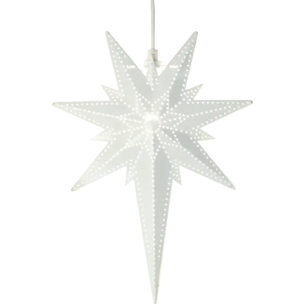 Vacker vit metallstjärna för inomhusbruk. Stjärnan har fina detaljer och plats för en ljuskälla. Underbar adventsstjärna som sprider en härlig julstämning i huset.