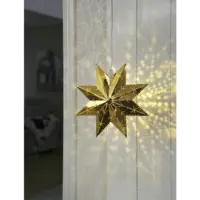 Vacker mässingfärgad metallstjärna för inomhusbruk. Stjärnan har fina detaljer och plats för en ljuskälla. Underbar adventsstjärna som sprider en härlig julstämning i huset.