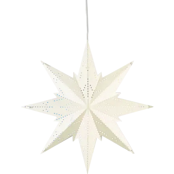Vit metallstjärna med dekorativa mönster. Underbar adventsstjärna som sprider härlig julstämning i huset. Stjärnan har plats för en ljuskälla.
