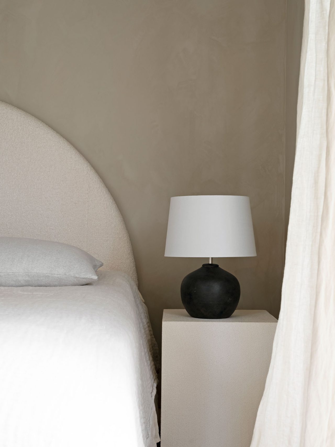 Mona svart är vid första anblick en vanlig, rund lampfot, i en trendig och vacker design. Men terracottan, de små variationerna i formen och inte minst dess finish skvallrar om hantverket som ligger bakom. För oss är det charmen och vad som gör denna bordslampa unik i varje hem.Höjd cm 28 Diameter cm 21 Diameter bas cm 14 Färg Svart Finish Matt Material Terracotta Material sladd Textil Färg sladd Svart Längd sladd cm 250 Sockel E27 Max watt 40 Watt Brytare Ja