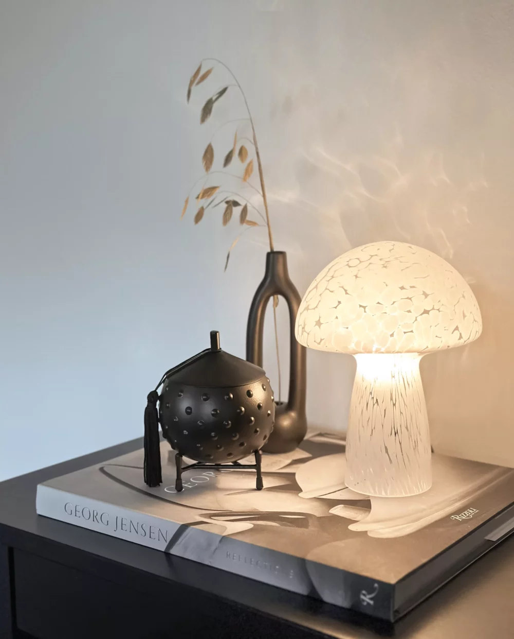 MUSHI bordslampa liten, vit från Aneta Lighting är en stilren och modern lampa som passar perfekt som belysning på skrivbordet, nattduksbordet eller hyllan. Med sin kompakta storlek och eleganta design blir den en perfekt inredningsdetalj i alla rum.