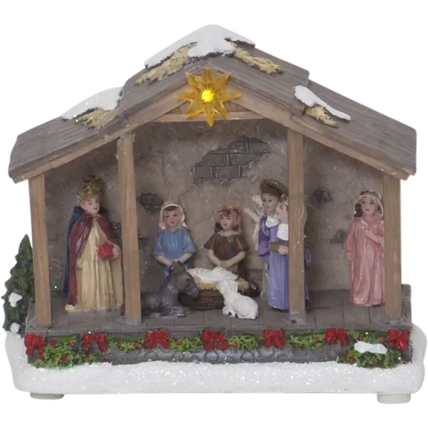 Stämningsfull dekoration till jul och advent, en stjärna lyser vackert på krubban. Produkten driv av batteri och har timerfunktion. Placera på ett bord eller en hylla för en härlig julstämning.