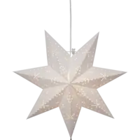 Dekorativ adventsstjärna i papper, stansat hålmönster som släpper igenom ett stämningsfullt ljus. Sladdställ med E14 lamphållare ingår. Dekorera till advent och jul, passar utmärkt i ett förnster eller mot en vägg för den perfekta julkänslan.
