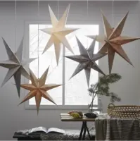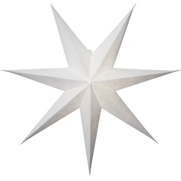 Vit pappersstjärna med hålmönster och struktur. Stämningsfull stjärna att hänga upp i fönstret för att skapa julkänsla. Papper av återvunnen bomull.