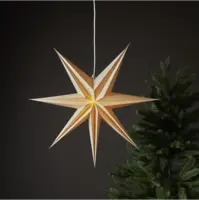 Nätt beige pappersstjärna med en dekorativt hålmönster och vikning. Modern adventsstjärna att dekorera fönster eller luta mot en vägg. Dekorera till advent och det ger en härlig julstämning.