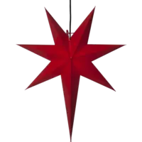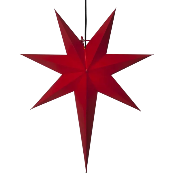 Röd pappersstjärna med svart textilkabel. Elegant stjärna att dekorera med i fönstret. Stjärnan har plats för en ljuskälla. Höjden är 66cm.