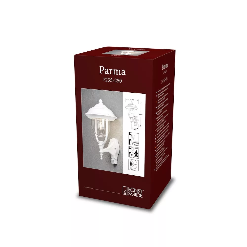 Parma vägglykta upp E27 PIR från Gnosjö Konstsmide är en pålitlig och stilren utomhusbelysning som kombinerar både funktionalitet och estetik. Med sin inbyggda rörelsesensor och möjlighet att använda olika ljuskällor, ger den dig en bekväm och energieffektiv belysning för ditt utomhusområde.