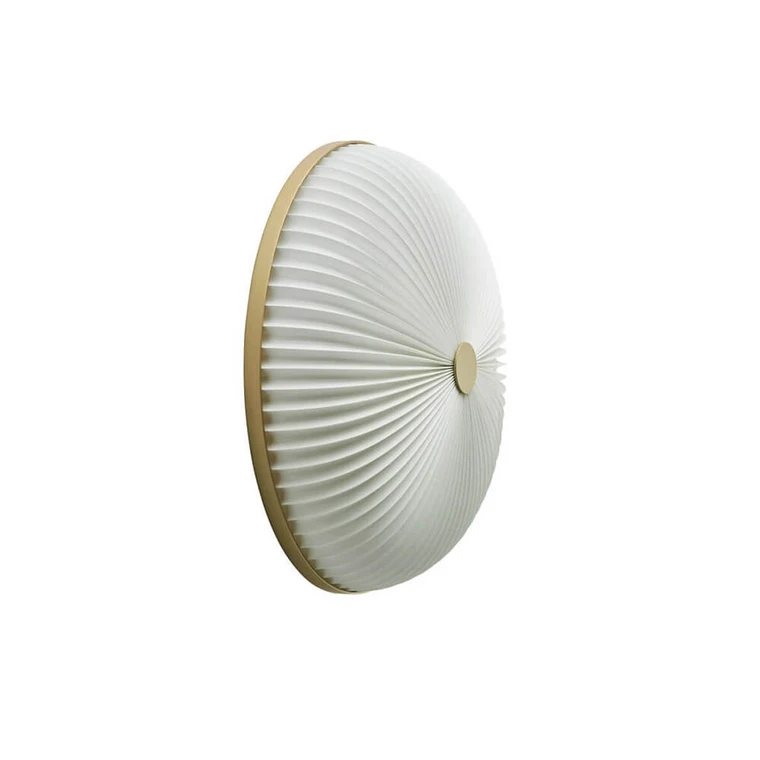 Denna eleganta tak/vägglampa från Le Klint i serien LAMELLA är ett perfekt tillskott till ditt hem. Med en diameter på 35 cm och en vacker gyllene färg kommer denna lampa att lysa upp ditt rum på ett stilfullt sätt. Lampan kan monteras antingen i taket eller på väggen, vilket ger dig flexibilitet i placeringen. Med sitt moderna och unika design kommer LAMELLA att bli en samtalspunkt i ditt hem. Skapa en mysig atmosfär och ge ditt rum ett lyxigt utseende med denna fantastiska tak/vägglampa från Le Klint. ✨🏡💡