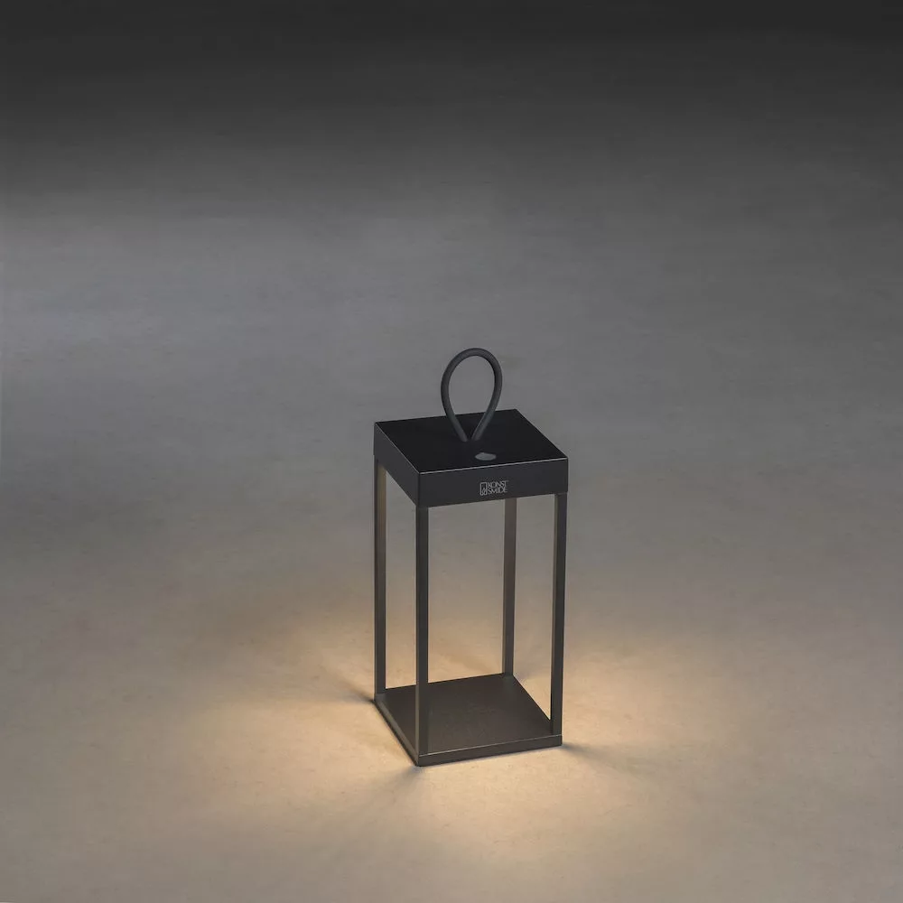 Lanterna är 30 cm hög och har en rektangulär form med klarglaspaneler på alla sidor, vilket ger en vacker och jämn spridning av ljuset. Den är utrustad med en USB-port, vilket gör det enkelt att ladda den med hjälp av en vanlig USB-kabel. Detta gör att du kan använda den både inomhus och utomhus, och du behöver inte oroa dig för att byta batterier.