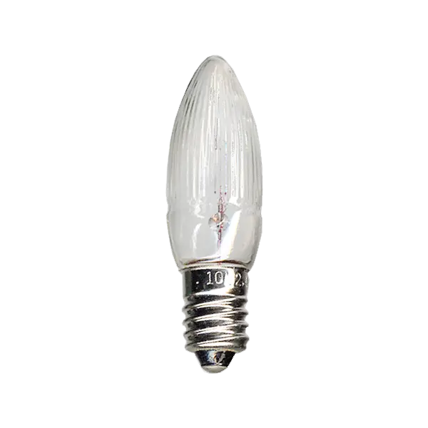 3-pack topplampor med E10 sockel och klart glas. Användningsområdet är inomhus.