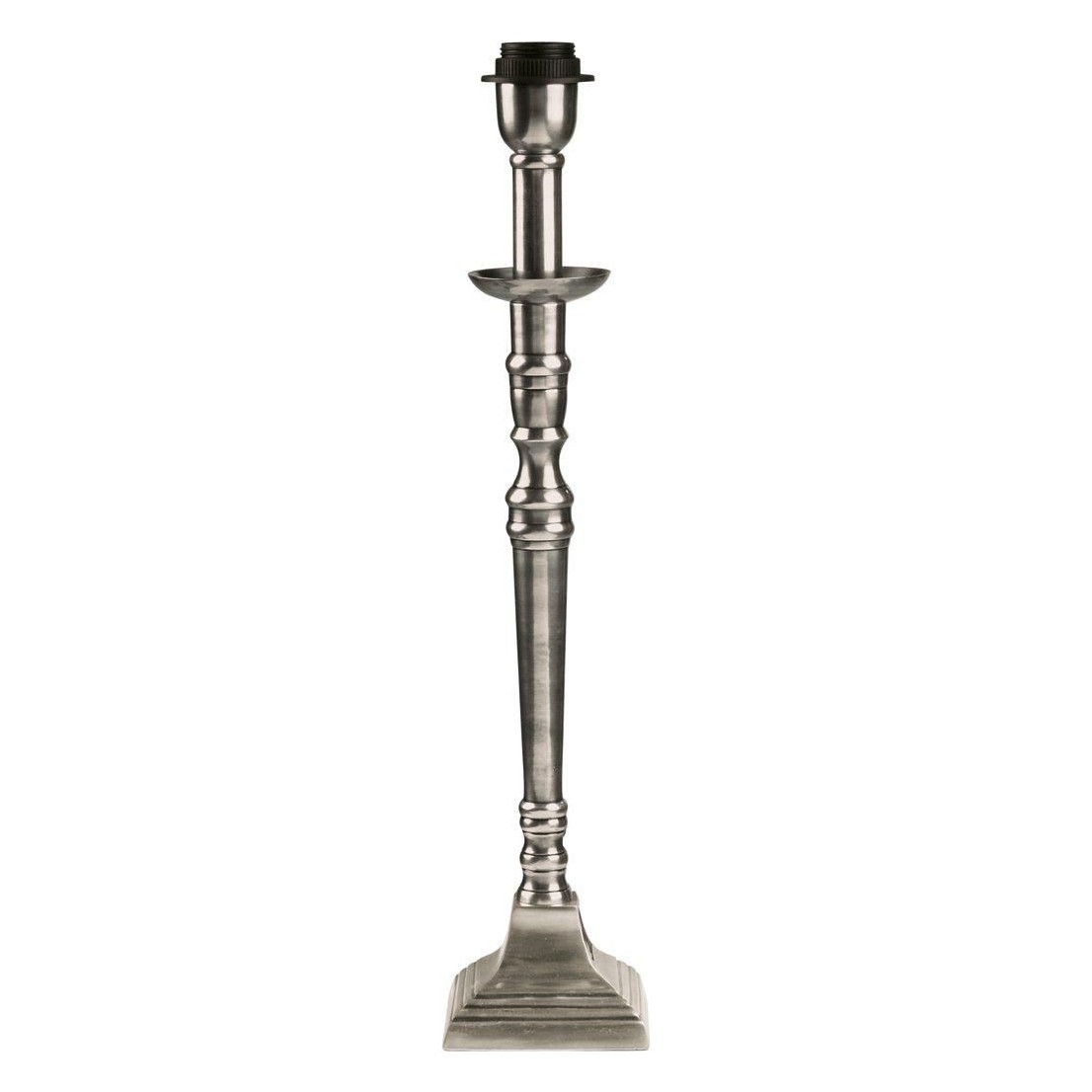 Den antiksilverfärgade ytan ger lampfoten en tidlös och sofistikerad look. Den har en vacker patina som ger den en autentisk antik känsla. Detta gör att den passar perfekt i både moderna och klassiska inredningsstilar.