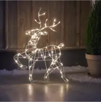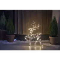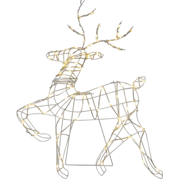 Mycket trevlig utomhusprodukt för din trädgård eller uteplats. Metallram, 73 cm hög och 47 cm bred, vit ren med 80 varmvita LED-ljus. IP44-adapter med 5 m transparent startkabel.