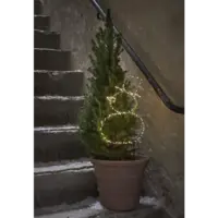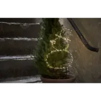 Metallram formad som en snögubbe. Batteridriven utomhusdekoration med timer funktion. Lättplacerad i kruka eller på marken. Ca 35 cm hög med avtagbara markspett. 120 varmvita LED ger ett vacket sken.
