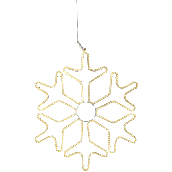 Siluett för utomhusbruk. Vacker dekoration i form av en snöflinga att ha i trädgården eller på framsidan av huset. Dekorationen har 480 LED-ljuskällor med varmvitt sken.
